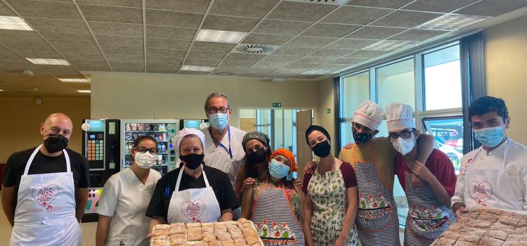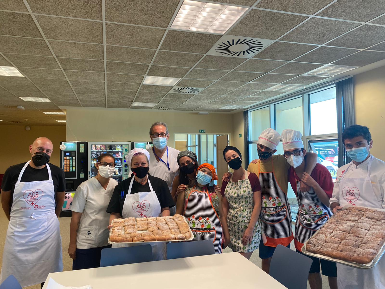 Alicante 15-7-21.- Los #HéroesConDelantal de Alicante Gastronómica Solidaria (AGS) siguen alumbrando bonitas iniciativas que engrandecen la dimensión social de esta ‘revolución solidaria’, que va más allá del reparto de alimentos entre los colectivos más vulnerables de la provincia de Alicante. Estos días, los alumnos de los cursos PICE de repostería y pastelería que imparte AGS en colaboración con la Cámara de Alicante, han realizado elaboraciones con una dedicatoria especial: todos los sanitarios y voluntarios que trabajan en el centro de vacunación de la Ciudad de La Luz.